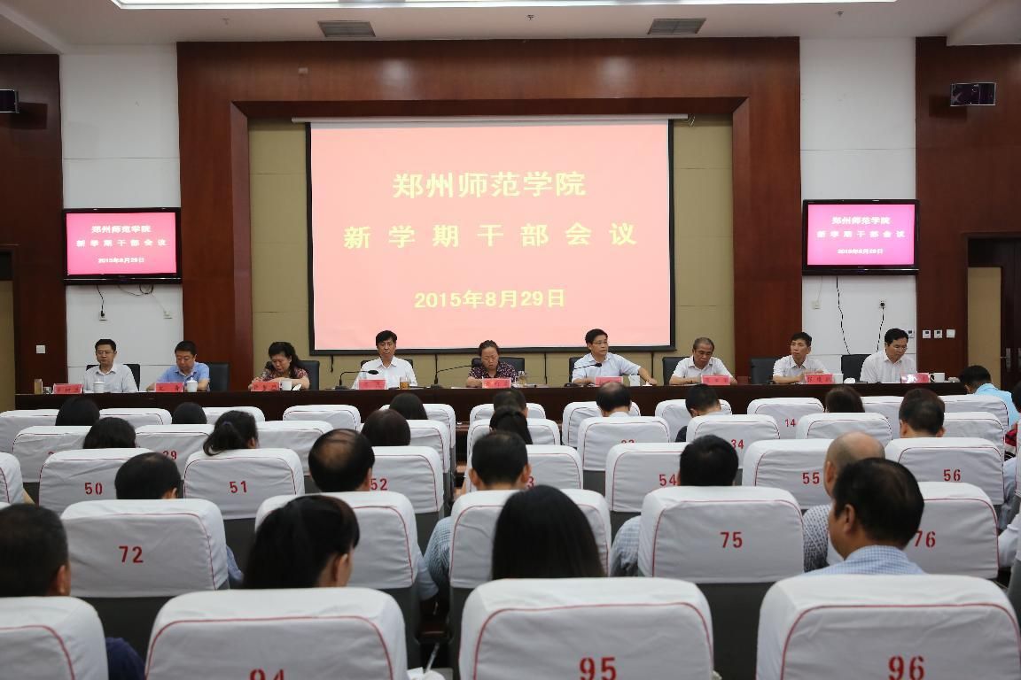 党委书记于向英对新学期工作提出以下几点要求,一是要重点要贯彻落实全省高等教育工作会议精神,认清形势,明确学校发展定位。既要发扬教师教育这个传统和优势,面向素质教育、面向基础教育、面向农村教育,不断推进教师教育改革,进一步强化教师教育特色,服务好郑州市以至河南省的基础教育;也要搞好非师专业向应用型转变,加强校政、校地、校企合作,建立产学研协同创新机制,根据市场对人才培养的需求,调整学科专业结构、创新人才培养模式、提高人才培养质量,更好地服务地方经济社会发展。二是要加强干部作风建设,明确责任,做好审计整改工作,抓住重点,全力整改落实,完善制度,构建长效机制。三是扎实推进三严三实专题教育,笃行实干,确保取得明显实效。践行三严三实,干部要率先垂范,当好坚定理想的表率;要坚持问题导向,把发现问题、解决问题作为出发点和落脚点;要突出实践特色,把三严三实专题教育落实在学校转型发展、提质增效、做好本科教学水平评估准备的过程中,把专题教育与我校干部队伍作风建设实际相结合,与全面深化高等教育改革相结合。
