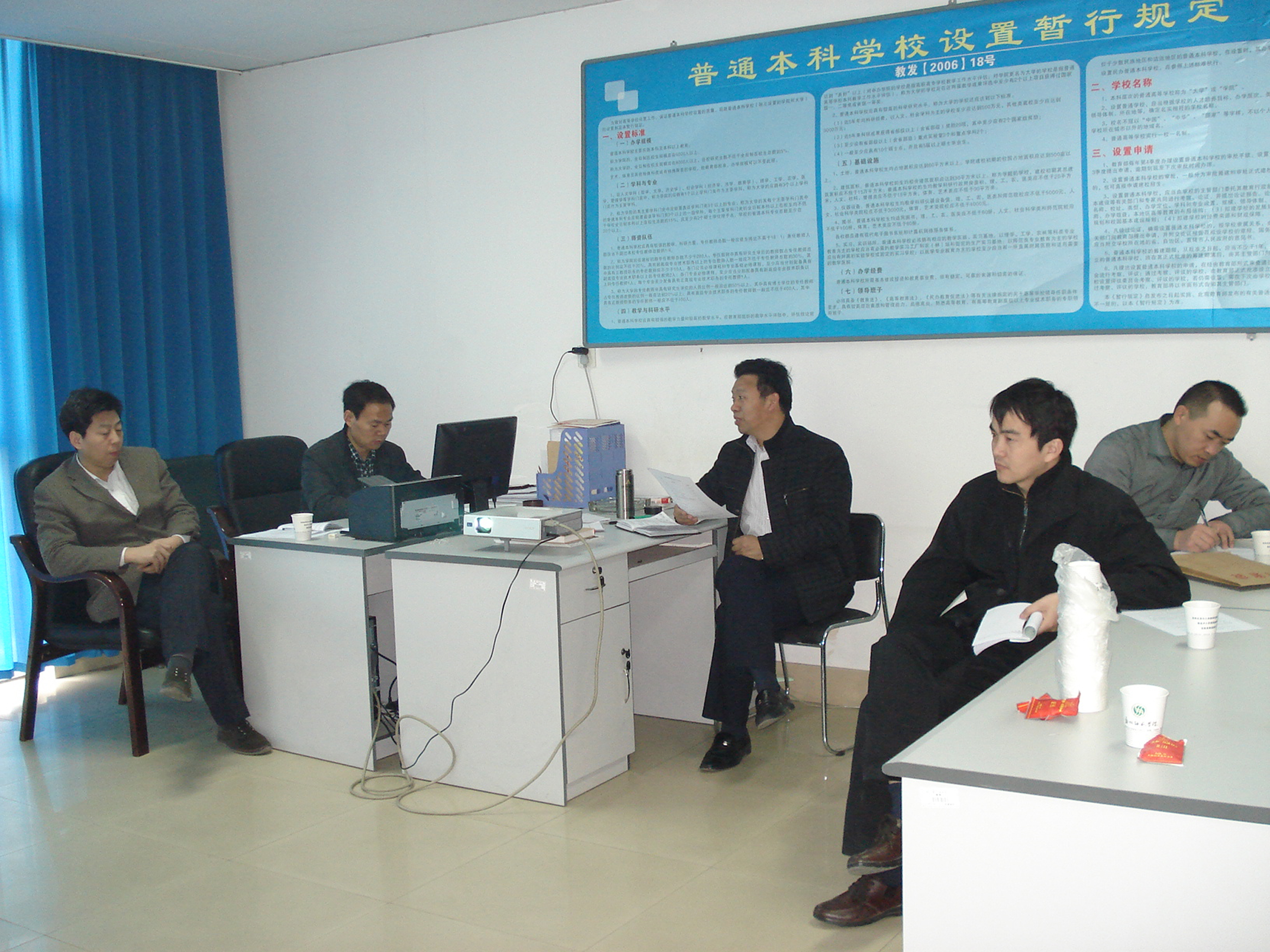 最后,徐处长对章程起草工作提出了几点要求:一是在起草章程过程中要多学习、多调查、多分析,少走弯路;二是章程建设要结合我校实际,充分体现我校的特色;三是在章程起草过程中对涉及的内容、描述的文字要反复推敲,确保章程完成质量。四是要定期研讨磋商,建立高效有序的工作方式和运行制度。